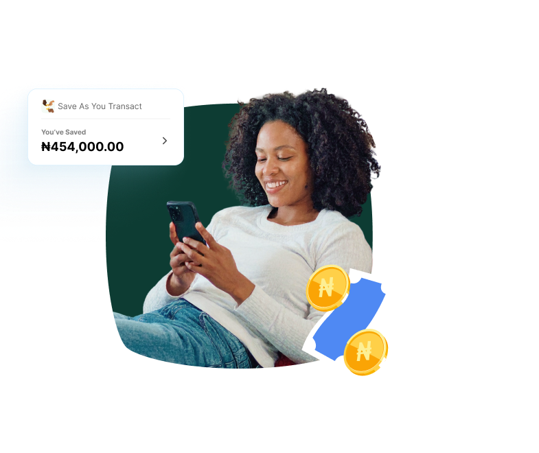 Save when you transfer, buy airtime, data, or bills. Choose to save a percentage of the value or save a flat amount.